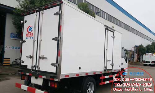 國五慶鈴五十鈴100P冷藏車廂體采用最新工藝復合板壓制生產線,樹脂膠恒溫恒壓粘接工藝,內外蒙皮為玻璃鋼,中間保溫層為8厘米聚氨脂切片復合成型,強度高,永不起包起泡. .底板為鋁合金防滑花紋板, 雙后開門門框架全部采用玻璃鋼制成的整體框架,門板重量輕,防腐性能好。雙后門中縫帶斜度,開關方便。門邊框密封采用進口優質橡膠(三元乙丙)密封條進行密封,保證廂體保溫效果的穩定性,門邊,門鎖及附件均為不銹鋼制作,廂體右側加一個單開側門。