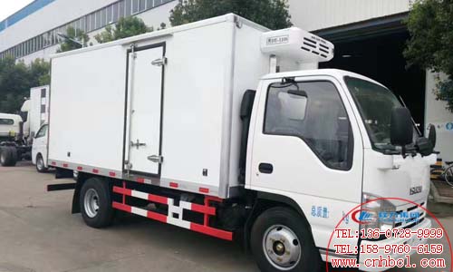 國五五十鈴100P冷藏車,整車型號CLW5040XLCQ5,箱體尺寸:4100x1740x1750mm, 底盤采用重慶五十鈴100p原廠底盤, 3360mm軸距, 五十鈴4KH1CN5LS發動機,功率72kw,98馬力,五十鈴5檔MSB變速箱,帶方向助力,駕駛室帶空調,帶ABS,油剎,駕駛室帶翻轉,7.00R16鋼絲胎.
