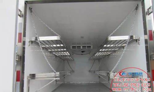 3、保溫箱體內部可選裝側開門,通風槽,肉鉤導軌,廂內隔板,雙溫制冷機組,備用電源設備,溫度記錄儀設備,箱體護板。