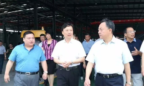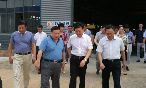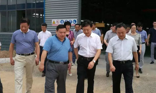 程阿羅總經(jīng)理(左一)陪同市人大黨組書記、常務(wù)副主任夏衛(wèi)東(中)、曾都區(qū)區(qū)委書記何運平(右一)現(xiàn)場視察程力商用車工業(yè)園輕量化罐車生產(chǎn)車間。