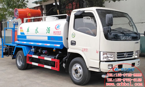 東風多利卡灑水車帶前沖后灑,帶側噴,罐體后帶工作平臺,平臺上安裝綠化灑水炮和農藥噴灑專用炮,灑水炮和農藥炮均可全方位旋轉,可連續調成直沖狀、霧狀、大雨、小雨、毛毛雨。噴藥炮霧化效果好,可遠程噴霧,射程達25米。