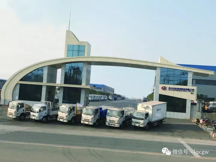 程力汽車集團(tuán)商用車暨新能源車工業(yè)園大門一瞥,品類齊全的新車新品整裝待發(fā)。