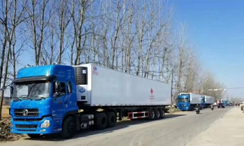 半掛冷藏車領(lǐng)航遠(yuǎn)行,長(zhǎng)長(zhǎng)的車隊(duì)綿延數(shù)里一眼望不到盡頭。