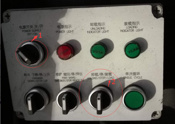 5、卸料:踩下離合器踏板, 將旋扭卸載/停/裝載鈕至卸載處,慢慢松開離合踏板.然后卸載指示燈亮了。