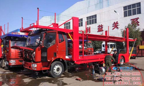 國五解放轎運輸車的廂體結構我們可以把轎運車分為骨架式、半封閉式和全封閉式三種結構,根據轎運車的后橋結構形式,我們可以把轎運車分為雙軸單胎式、雙軸雙胎式等。