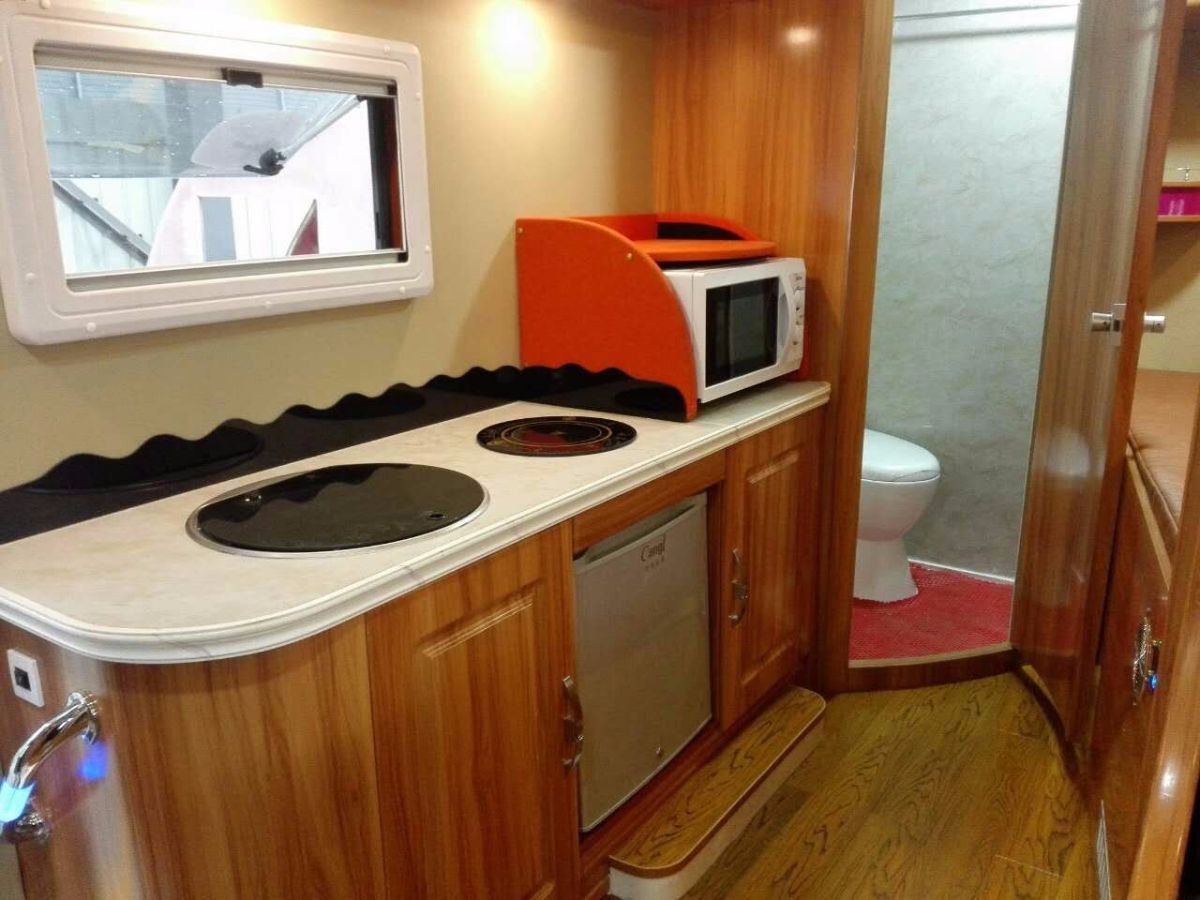 雖然不漏雨至少漏風吧,隔音如何? 拓展的密封艙目前主要靠電動機傳動,齒輪咬合機構,國外比較先進的是四條軌道。以前都是底部兩條軌道。密封是靠內外兩道橡膠密封圈,拓展外延和拓展內部的內沿都有密封圈,進水漏風的可能性不大,但處理不好也會有一些縫隙。 拓展的密封圈保溫肯定沒有房車墻壁好,延展出去的部分做工和房車的車壁是一樣的。使用起來沒有什么不同。隔音效果房車本身就不怎么好和拓展無關,在美國房車和拖掛主要以大奢華和拓展多為目前的流行趨勢,因為很大部分美國的房車是用于停下來生活的,不是跑來跑去的,和我們目前對房車的理解要求有點區別,我們更多的是拖著床跑。