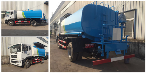 東風多利卡D9灑水車上裝配置:罐體采用4mm厚武鋼優質碳鋼板制作,容積12立方,前沖(噴)后灑,帶側噴,罐體后帶工作平臺,平臺上安裝綠化灑水炮,灑水炮可全方位旋轉,可連續調成直沖狀、大雨、小雨、毛毛雨,帶安全護欄,配備全國質量評比第一名的杭州威龍大功率專用灑水泵,泵可自吸自排,安裝過濾網,帶消防接口,可通過消防栓進水,帶自流閥,隨車選裝20米綠化卷盤,可噴灑農藥,罐體金屬漆。