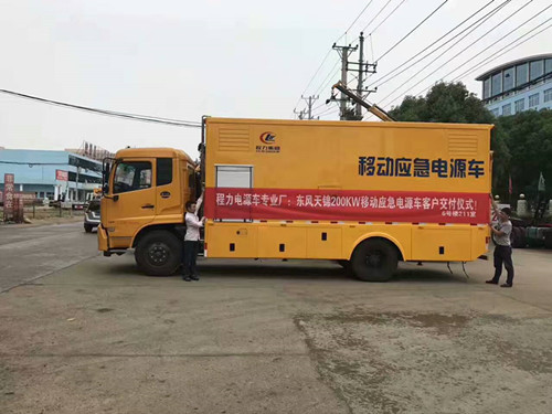 江西省南康政府采購移動電源車一臺,該車采用東風天錦底盤,康明斯180馬力發動機,6檔變速箱,可同時提供200KW電源,用于應急救援,緊急提供電源支持,車輛動力強勁,通過性好,用戶試用后很滿意。