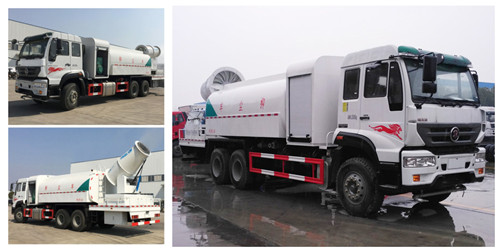 重汽國五后雙橋抑塵車60米,80米,100米多功能霧炮抑塵車整車配置:采用國五重汽底盤,280馬力發動機,4350+1350軸距,罐體外形可選圓形或方形,16方水罐,選裝80-120風送式噴霧機 霧炮車適用于環保行業、易起塵的煤炭及其它物料堆場、卸料口、車輛卸料時、碼頭、煉鋼廠等的噴水除塵、抑塵、降溫;公共場所或垃圾填埋場噴灑等。霧炮車噴射的水霧顆粒極為細小,達到微米級,在霧霾天氣可以進行液霧降塵、分解淡化空氣中的顆粒濃度、能有效分解空氣中的污染顆粒物、塵埃等,有效緩解霧霾。據介紹霧炮車能夠將漂浮在空氣中的污染顆粒物迅速逼降地面,達到清潔凈化空氣的效果。 多功能抑塵車突破了傳統灑水車的桎梏,實現了前噴,側噴,后噴等全方位噴霧功能,可隨意調節噴霧角度,性能優良,運行高效。相比傳統灑水車,多功能抑塵車可節約70%-80%的耗水量,且水霧覆蓋范圍遠遠大于傳統灑水車,是城市道路清潔,揚塵治理的不二選擇。