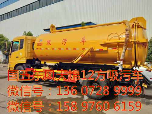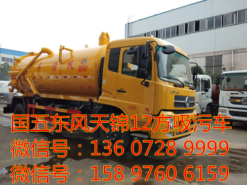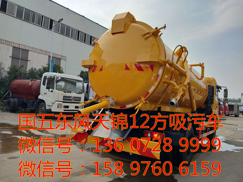 國五東風天錦12方吸污車罐體容積12立方,罐體上裝配置:吸污車帶視糞窗,1個自流口,可以加裝洗手裝置,防溢閥,吸污管1根8米,后門液壓開啟,配SK-15水循環真空泵,吸污車吸程大,吸力遠,不帶吊桿,罐體帶舉升功能。