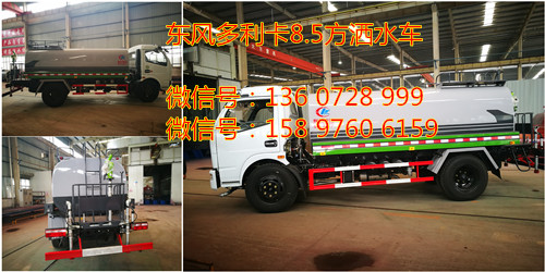 東風多利卡8.5方灑水車底盤配置:整車型號: CLW5111GSSD5型底盤型號: EQ1110SJ8BDC, 錫柴4DX23-140E5發動機,140馬力,2030單排D7駕駛室, 8.25R20鋼絲胎,單層大梁,斷氣剎,ABS,6檔變速箱。