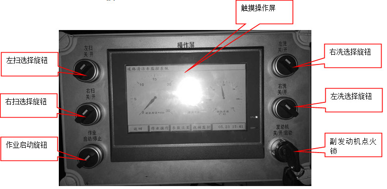 清淤、水槍功能在車尾部位的操作盒也設定有啟停按鈕,與此處的按鍵功能一樣,操作過后一定要置于停止位置,否則兩處操作不一致有可能造成程序錯亂。