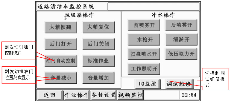 清淤、水槍、洗掃作業不能同時進行,每一次只能啟動一個功能。一個功能打開后,其他功能不能被啟動,必須等其他功能關閉完成以后才能啟動其他的功能。