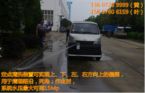 2、定點清洗裝置可實現(xiàn)上、下、左、右方向上的偏擺,用于清理路沿,死角;作業(yè)時,系統(tǒng)水壓最大可到15Mp。