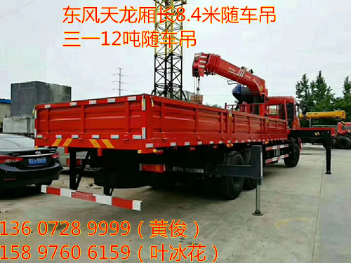 東風(fēng)天龍廂長(zhǎng)8.4米配三一12噸隨車吊底盤采用天龍駕駛室,豪華內(nèi)飾,可選康明斯245_270馬力 陜齒9檔變速箱 ,前橋5噸 后橋雙10噸 300局部三層加強(qiáng)型大梁,1100鋼絲胎, 行駛記錄儀,氣囊座椅 原廠空調(diào)。上裝:三一12噸四節(jié)直臂上操作吊全液壓 全回轉(zhuǎn)。 貨箱尺寸:8400*2450*600mm。