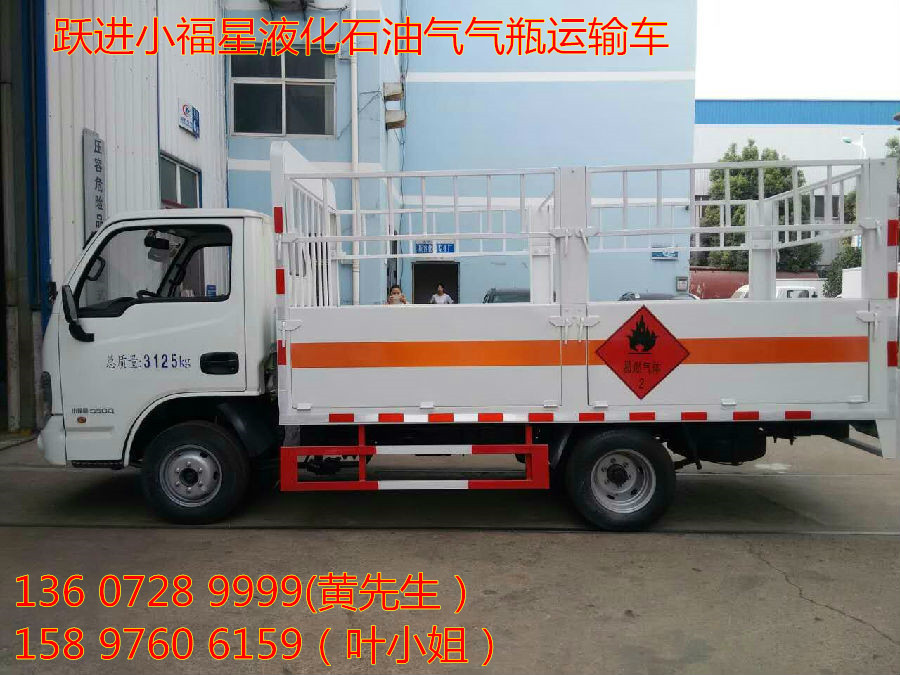 躍進小福星液化石油氣氣瓶運輸車該車適用于運輸危險品為危險貨物運輸車,隨底盤選裝駕駛室。主要用于運輸具有獨立容器(瓶)包裝的液化石油氣,丁烷, 乙炔, 乙烷, 丙烷, 丁烯, 打火機或打火機加油器, 二氧化碳, 壓縮氧(氮, 空氣, 氦, 氬, 氖), 類項號:2.1。