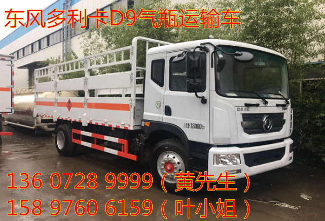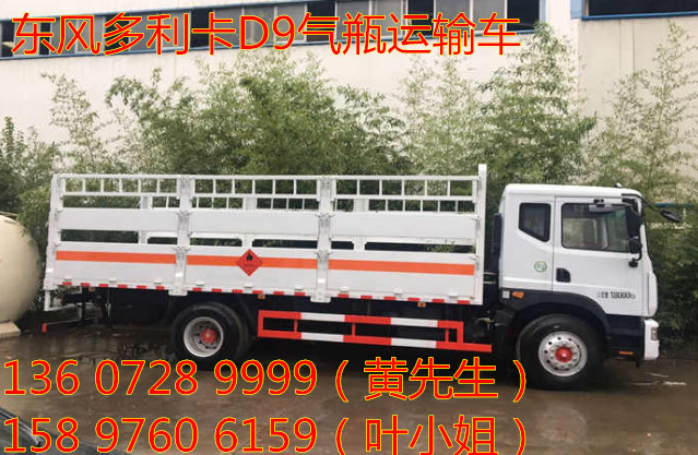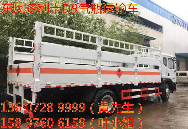 東風多利卡D9氣瓶運輸車該車適用于危險品運輸。隨底盤選裝駕駛室.前面罩, 前組合燈具.廂體選裝無柵欄.運輸具有獨立罐(瓶)容器包裝的易燃氣體:液化石油氣, 壓縮天然氣, 乙炔, 乙烷, 丁烷, 丁烯, 丙烯.甲烷.二甲醚, 壓縮氫.類項號2.1, 運輸具有獨立容器包裝的非易燃無毒氣體:二氧化碳, 壓縮氧. 壓縮空氣(氮, 氦, 氬, 氖), 類項號2.2。