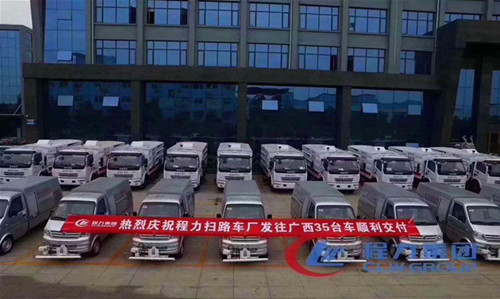 金九銀十,剛開始邁進,湖北程力公司就迎來了來自廣西的這次批量大訂單——35臺掃路車 洗掃車和道路養護車即將發往廣西,服務廣西人民!湖北程力,專用汽車生產直銷廠家,全新產品,精品打造,全國統一直銷熱線:136-0728-9999/158-9760-6159歡迎您的光臨選購。