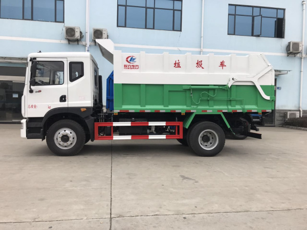 2、國五東風多利卡D9壓縮式對接垃圾車(12方),產品其他相關說明: 該車操作系統是有液壓控制系統來完成,控制方式可以為手動或電啟控。壓縮垃圾站在將垃圾壓縮成塊后將垃圾箱體垂直舉起,并打開壓縮箱排泄門,這時垃圾車箱體后門向上旋轉開啟,垃圾車后門與壓縮箱后門對接,之后垃圾塊被壓縮箱內的推板水平推進到垃圾車箱體內,完成垃圾裝載后關閉垃圾車后門,將垃圾運到垃圾處理地進行傾卸。改垃圾車的收運方式是目前國內廣泛采用的垃圾壓縮站垃圾轉運方式,可以實現一車多站,大大降低了配備成本和空間等等。其專用裝置的功能均以汽車發動機為動力,通過液壓機構手動或電控,氣控來實現。車輛的箱體采用優質碳鋼板全密封焊接結構,具有強度高,重量輕,不產生二次污染等優點。
