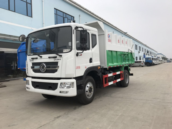1、國五東風多利卡D9壓縮式對接垃圾車(12方),產品如下圖所示: