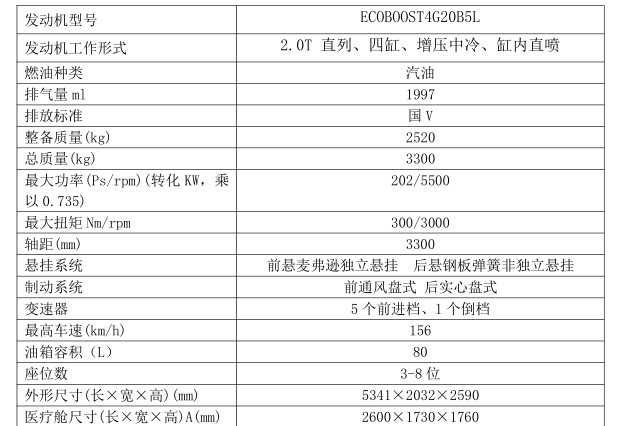 福特新全順轉運型救護車技術參數