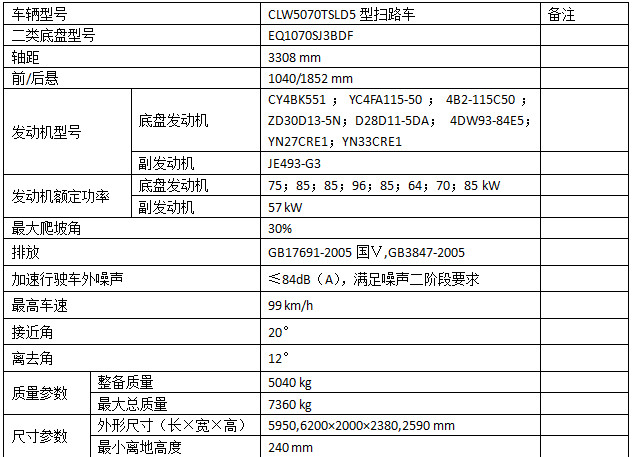 東風多利卡D6掃路車參數配置 帶掃盤4把,江鈴副發動機;大力馬達;施耐德控件開關;臺灣電磁閥組;免維護自分離式離合器;免維護風機;不銹鋼水箱;不銹鋼垃圾箱;尾部LED箭頭燈;手動泵應急系統;刷臂轉動機構使用高新耐磨工程隔套,免打黃油;精密冷彎無縫液壓油管。