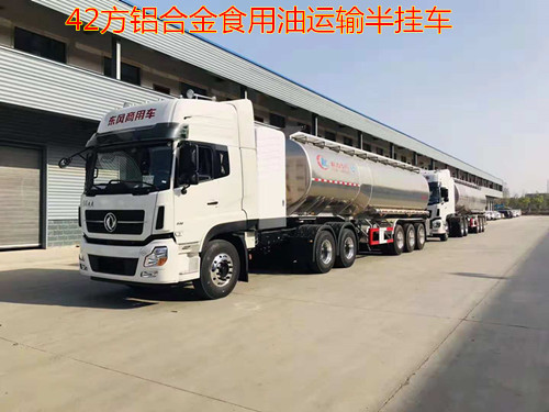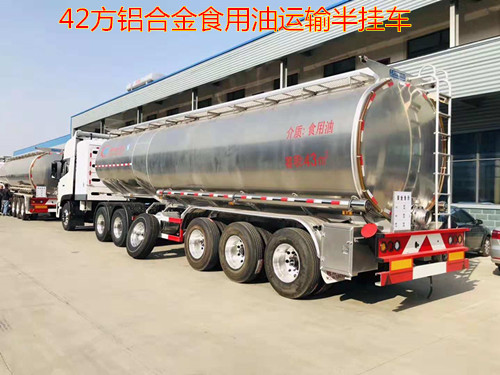 42方鋁合金食用油運輸半掛車整車型號:CLW9400GSYLV型鋁合金食用油運輸半掛車,總質量:40000(Kg),額定載質量:33000,33300(Kg),整備質量:7000,6700(Kg),42方鋁合金食用油運輸半掛車整車外形尺寸:11000X2500X3650(mm),該車非危險品運輸車。罐體有效容積:43立方米,罐體為鵝頸式:罐體外形尺寸(長×長軸×短軸)(mm):前半部為4000x2480x1930,后半部為6500x2480x2130。