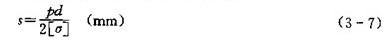 (5)管道壁厚的確定,管道壁厚s應(yīng)滿足強度條件,可用下式計算: