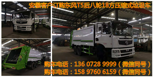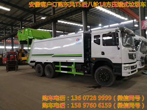 安徽客戶訂購東風T5后八輪18方壓縮式垃圾車