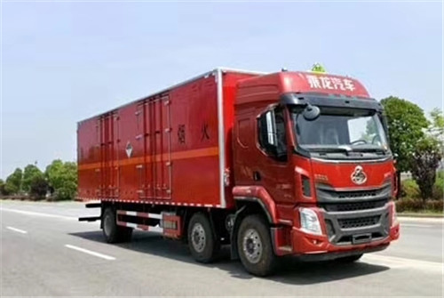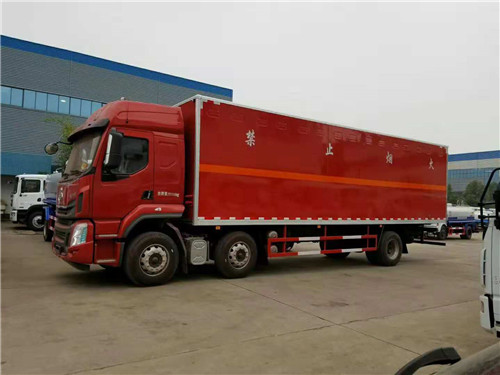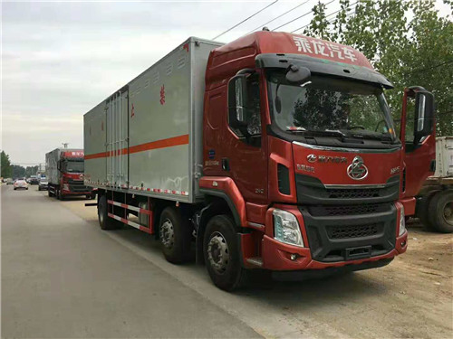 東風柳汽小三軸廢棄電池雜項危險品廂式運輸車該車適用于運輸危險品為危險貨物運輸車。廂體頂部封閉, 不可開啟。選裝高頂駕駛室, 選裝廂體內部結構, 選裝右側箱體不開門, 選裝側門形式及位置, 選裝不開門的廂體寬度為2500mm, 選裝后部液壓圍板。僅采用底盤子午線輪胎和帶ABS的底盤, 該車前輪安裝盤式制動器, 前置排氣管, 裝配限速裝置, 限速80km/h。安裝帶有衛星定位功能的行駛記錄儀。安全裝置為導靜電帶, 用于防止靜電。