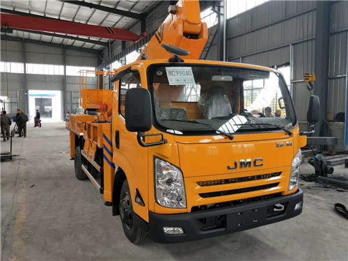 江鈴凱銳22米伸縮式直臂帶無線搖控高空作業車底盤配置:采用江鈴JX1083TK25,7.50鋼絲胎,六檔箱,軸距3815mm,斷氣剎,152馬力,帶原廠空調和方向助力,電動玻璃,遙控中控鎖,ABS,排氣制動,尿素罐,22米升縮高空作業車!帶無線操作。 上裝配置:四節六邊形伸。