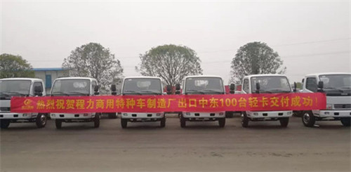 2019到來了,新的一年小編帶來“捷報”!程力商用特種車制造廠近期出口了100臺輕卡!!!中東的客戶現在已經用上了咱們中國人制造的產品了!好評100滿意100,下面給大家分享幾張私享美圖~