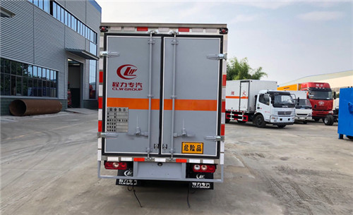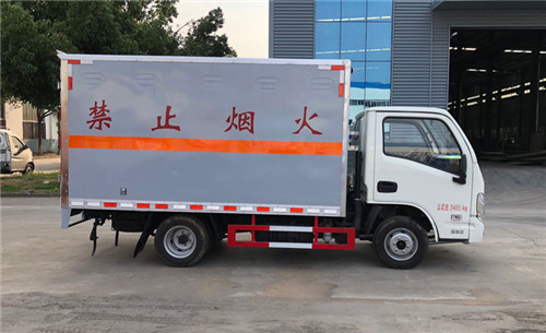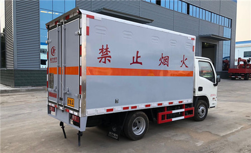 躍進3米3雜項危險品運輸車整車尺寸(mm):5180×1830×2580,箱體尺寸(mm):3350×1700×1700 ,箱體采用拼裝結構,外厚度為1.5毫米厚度武鋼冷軋鋼板,中鋼骨架,內壁為鋁合金板,箱體厚度為5公分,箱體外表上方采用模壓成型帶防水通風功能百葉窗,固定貨物的臥式拉環鉚接在鋼骨架上,牢固可靠。門內安裝高精度限位裝置和駕駛室內部報警器相連接,杜絕箱門未鎖緊情況。箱體外部箱門打開處安裝防自關門的限位風勾,箱體外觀涂裝灰色油漆,駕駛室內部安裝安全報警器連接后部箱體,對箱體內部實施安全監控。