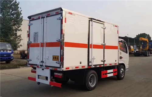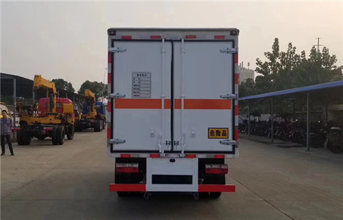 東風牌廂體3.5米雜項危險品廂式運輸車整車尺寸(mm):5260×1940,1980×2800,箱體尺寸(mm):3480×1800×1750 ,箱體采用拼裝結構,外厚度為1.5毫米厚度武鋼冷軋鋼板,中鋼骨架,內壁為鋁合金板,箱體厚度為5公分,箱體外表上方采用模壓成型帶防水通風功能百葉窗,固定貨物的臥式拉環鉚接在鋼骨架上,牢固可靠。門內安裝高精度限位裝置和駕駛室內部報警器相連接,杜絕箱門未鎖緊情況。箱體外部箱門打開處安裝防自關門的限位風勾,箱體外觀涂裝灰色油漆,駕駛室內部安裝安全報警器連接后部箱體,對箱體內部實施安全監控。