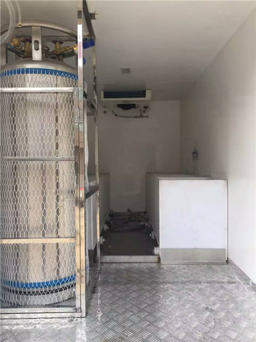 3、該車前部設計有合為一體的工具箱和液態壓縮氧罐(一罐壓縮氧氣相當于40瓶普通的氧氣瓶供氧量),在運輸中不用擔心氧氣不足,行駛途中不用加冰,不用換水,駕駛室能自動調節水溫,讓溫度控制在10-18度,魚在這個溫度中是靜止不動的,大大提高魚的成活率。