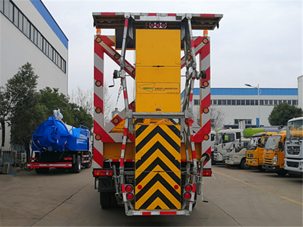 東風天錦防撞緩沖車上裝技術(shù)參數(shù):防撞緩沖車的防撞緩沖吸能模塊主要由車載防撞緩沖墊和導(dǎo)向標志架組成,充當施工作業(yè)車輛后方的緩沖衛(wèi)士。如若發(fā)生追尾事故,能夠在肇事車輛和前方施工作業(yè)區(qū)域之間構(gòu)建一個緩沖區(qū)域,通過機具結(jié)構(gòu)變形吸收撞擊的能量,最大限度地降低被保護人員及設(shè)備遭到碰撞的幾率。