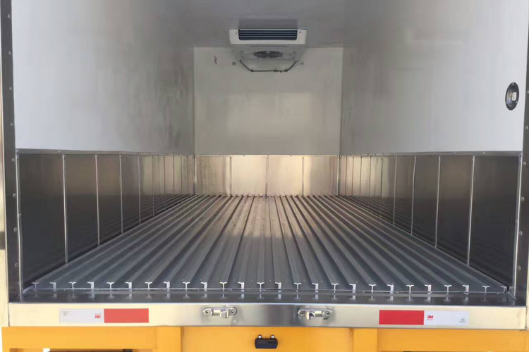 慶鈴五十鈴3噸冷鏈運輸車上裝配置:整車尺寸(mm):5995×2070,2130×2690,單排箱體內尺寸(mm):4100×1900×1800。廂體選用8cm厚度玻璃鋼加聚氨酯發泡保溫箱體結構,一次性模壓成型技術,解決了保溫箱體的密封不好的問題,各個連接處采用發泡和密封膠柱塞,箱體內部底部采用鋁質花紋板鋪設,牢固,美觀,易清洗,達到國家A級標準保溫等級。加裝漢雪、華泰、韓亞、開利、冷王等品牌非獨立制冷機組,機組溫度選擇范圍:0度、-5度、-10度、-15度。
