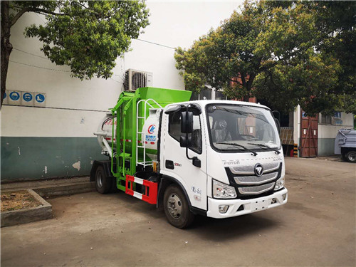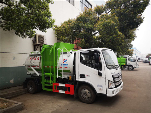 福田歐馬可餐廚垃圾車容積4-5立方米,方形箱體,碳鋼材質(zhì),內(nèi)置推板卸料,箱體不帶舉升功能,箱體右側(cè)掛桶提升機構(gòu),上進料口液壓開啟,后蓋液壓開啟、鎖緊,采用國內(nèi)知名液壓件,揚州多路閥。油缸、長源油泵。