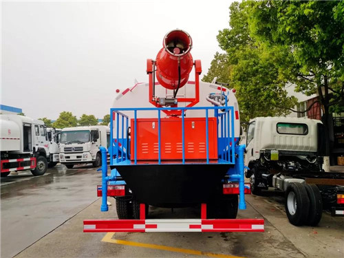 抑塵車的別名也叫霧炮車,因為其外形結構是尾部有一輛巨炮,所以霧炮車這個稱呼知名度會更高一些。我們需要先了解霧炮車是由電機、高壓風機、水平旋轉裝置、仰角控制裝置、導流筒、霧化噴嘴、高壓泵、儲水箱等主要部件組成。