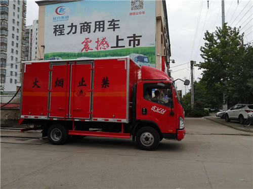 解放虎V廂長4.15米易燃氣體廂式運輸車底盤采用解放虎V單排紅色駕駛室,3300mm軸距,國五濰柴110馬力發動機,型號WP2.3Q110E505檔變速箱,7.00R16胎, ABS,帶前盤限速裝置,排氣管前置。
