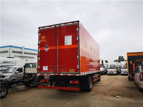 國五解放龍V廂長6.75米雜項危險品廂式運輸車廂體尺寸:6750×2460×2600mm,整車尺寸:9135×2550×3995mm,廂體內外采用平面彩鋼板廂體,底板平面碳鋼板,鋪裝防靜電膠皮及車載專用煙霧報警器和后門防盜器.有靜電帶,滅火器,防火罩。整車國標反光標示及警告標志。廂體同駕駛室顏色。