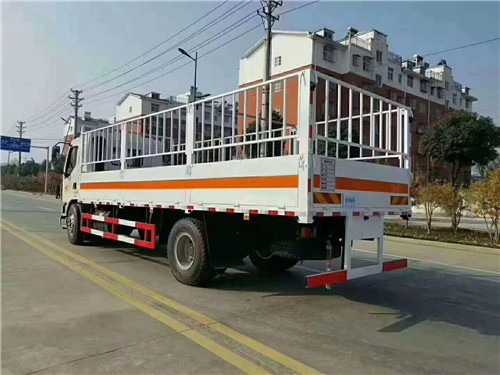 東風柳汽廂長6.8米氣瓶運輸車廂體配置:底板5MM花紋板上鋪防靜電膠皮,側板為2MM冷平板內置臥環(huán),側板上帶可拆卸式高欄,龍門架加固,按照國家危險品標識進行張貼,隨車贈送滅火器2個、靜電拖帶2個等 (選裝低欄)