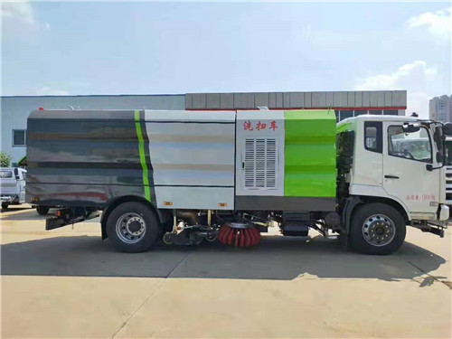 東風天錦KS駕駛室洗掃車容積16立方上裝配置:掃路車選用方形箱體,不銹鋼水箱容積9方,碳鋼合金垃圾箱容積7方。康明斯170馬力柴油副發動機,中置2把掃盤,意大利馬達,法國施耐德控維件開關,海普瑞斯電磁閥組,廈門南超分離式離合器,免維護風機,尾部LED頭燈,手動應急泵系統。掃路車最大清掃寬度3米,吸入顆粒度為120mm。掃路車清掃作業速度:每小時3-15公里,保潔作業速度:每小時15-20公里,清掃能力:每小時45000㎡。抽吸能力:2.0克/平方厘米,抽吸力度:≥100.傾斜角:≥45°,清掃效率:≥96%,制動距離(滿載30km/h):≤10m,最高車速:95KM/H,最小轉彎半徑:8M,爬坡角度:30°。