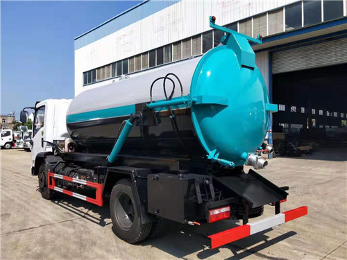 國六東風多利卡8方吸污車罐體采用5mm厚碳鋼板,容積8立方,罐體雙缸液壓舉升自卸,尾門雙缸液壓啟閉,尾部配自流口配快速接頭一個,配山東SK-9水循環吸污泵,配8米吸污管一根,加裝隨車清洗功能及清水箱,清水箱容積盡量放大。