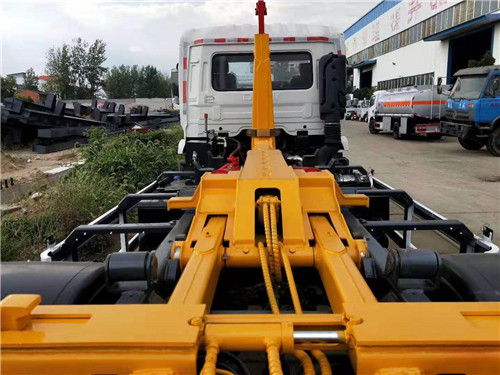 國六東風天錦車廂可卸式垃圾車匹配國五康明斯210馬力發動機,275真空胎,斷氣剎,帶原裝空調。上裝雙缸自卸,伸縮套臂,手電一體操作。