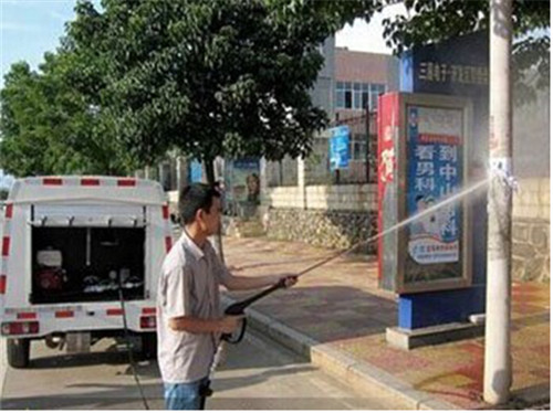 3、配置手動噴槍裝置、手推式噴管清洗裝置,可清洗小廣告、人行步道、路沿廣告牌等各類公共設施,方便小巧靈活操作。