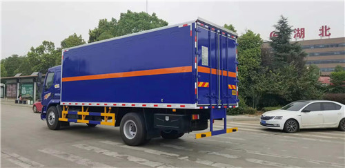 東風柳汽單橋8類腐蝕品危化品廂式車廂體配置:嚴格按照公告尺寸制作,外板采用1mm厚冷軋板有一次性成型的百葉窗,內飾為導電性能良好的鋁板有透氣孔,內襯為矩形管骨架牢靠穩定,內部填充為透氣防潮阻燃的擠塑板,四種材料經現代工藝復合而成,廂體外部上下鋁合金型材包邊,底板和車廂前下部鋪橡膠皮,后門雙開,右側中部雙開門,內部有固定貨物的臥環,車輛外部有靜電帶、滅火器、防火罩,車廂內安裝煙霧報警器和門防盜報警器,嚴格按照國家危險品相關法規張貼。