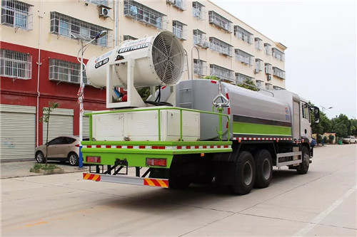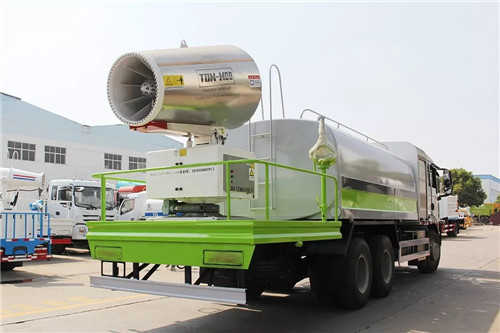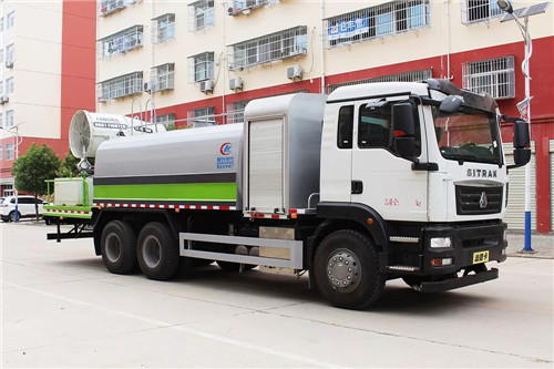 國六重汽汕德卡多功能抑塵車底盤參數:底盤采用重汽原廠后雙橋底盤,豪華駕駛室,重汽310馬力發動機,10檔變速箱,11.00鋼絲胎帶備胎,原裝空調,ABS,行駛記錄儀,有環保,有免征,整車不超重不超尺寸。