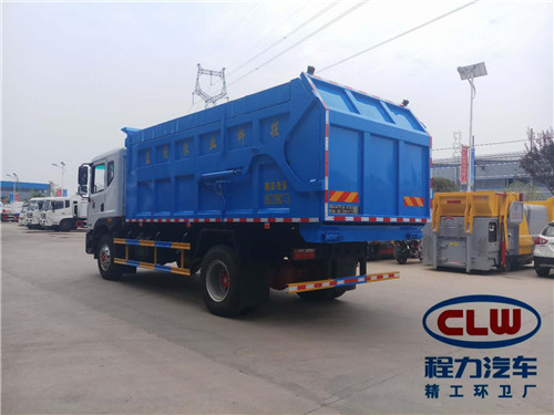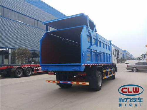 東風天錦(15方)對接式垃圾車整車型號CLW5161ZDJD5型壓縮式對接垃圾車 ,底盤型號DFL1160BX1V,總質量:15800kg,額定載質量:7105,7605,7170,7670kg,整備質量:8500,8000kg,駕駛室準乘人數(人):3,2,外形尺寸(mm):8300,8000,7800,7100,7250×2500×3300mm,軸數:2,燃料種類:柴油。東風天錦(15方)對接式垃圾車圖片展示: