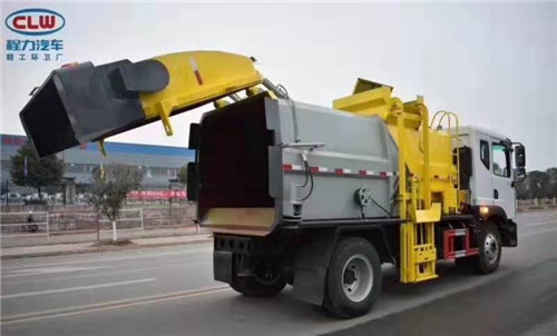 國五東風多利卡D9壓縮垃圾站對接式垃圾車整車型號:CLW5164ZDJD5型壓縮式對接垃圾車 ,底盤型號:EQ1161LJ9BDE,總質量:16000(Kg),額定載質量:8060,8520(Kg),整備質量:7745,7285(Kg),國五東風多利卡D9壓縮垃圾站對接式垃圾車整車尺寸:7970, 7770, 7220X2500X3200(mm),燃油種類:柴油。